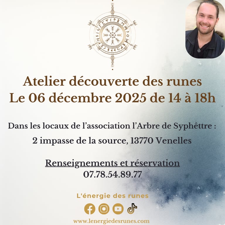Cet atelier s’adresse à toutes celles et ceux qui souhaitent comprendre les bases des runes nordiques, découvrir leur histoire et commencer à les utiliser en pratique.